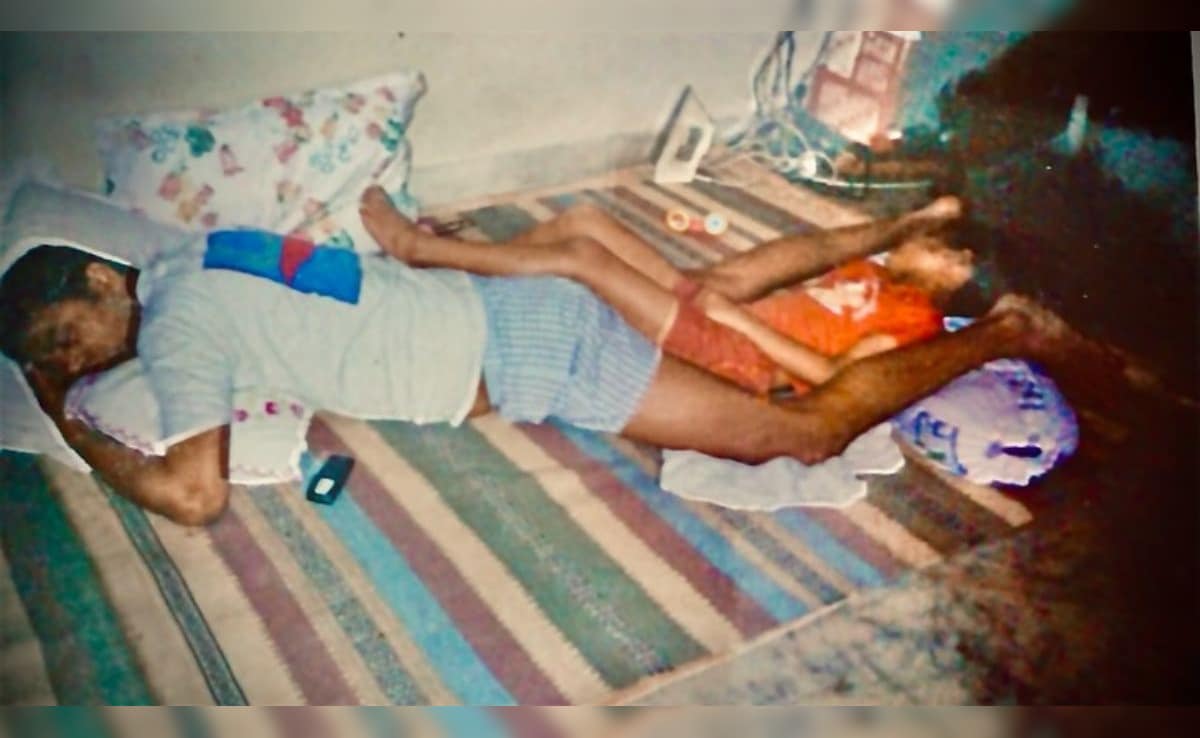 Babil Khan shared two images, the first being a nostalgic photograph of a young Babil lying on the back of his father, the late Irrfan Khan
